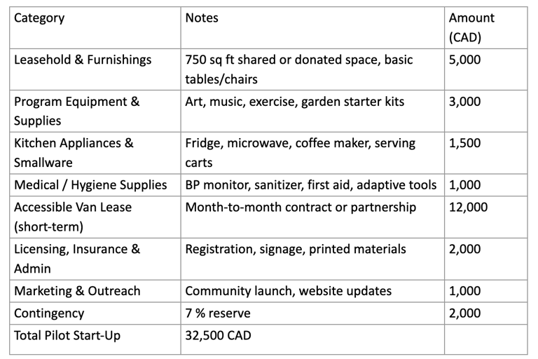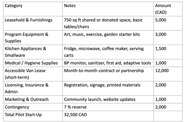 Reduced Start-Up Budget (Pilot Launch – Estimated $32,500 CAD):