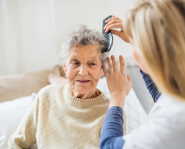 Our compassionate team will assist with Activities of Daily Living (ADLs) as needed — including mobility support, grooming, toileting, or hair care.